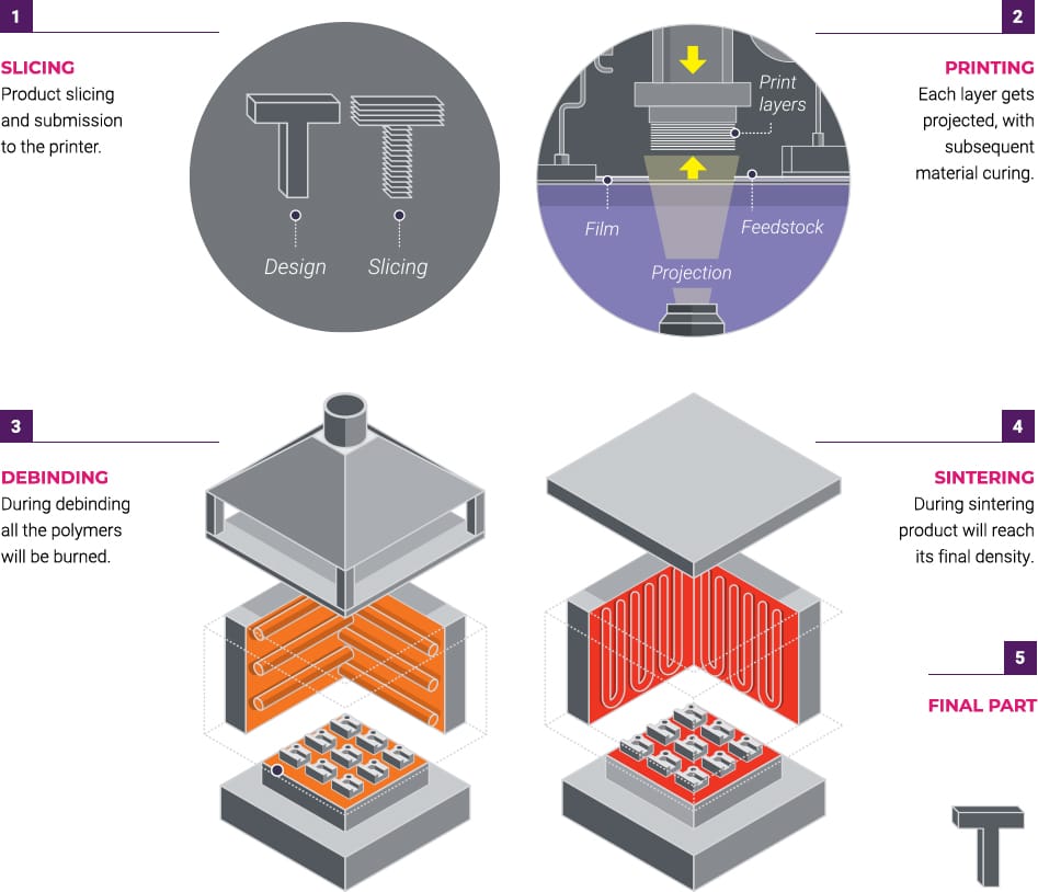 - Metals: 316L, 17-4 PH, Inconel 625, Copper